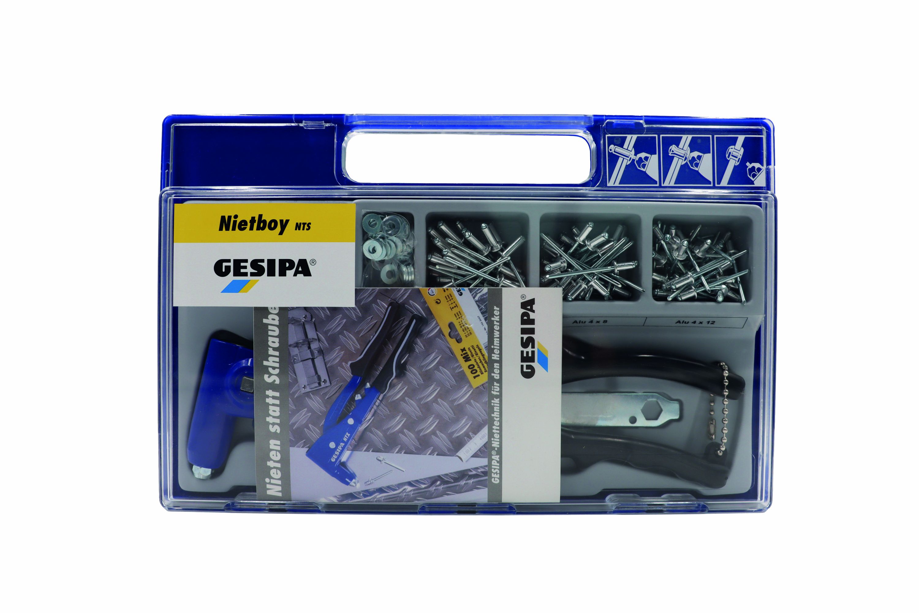 Nietboy The handyman‘s riveting kit including NTS hand riveter and a selection of 100 rivets, washers and a drill.